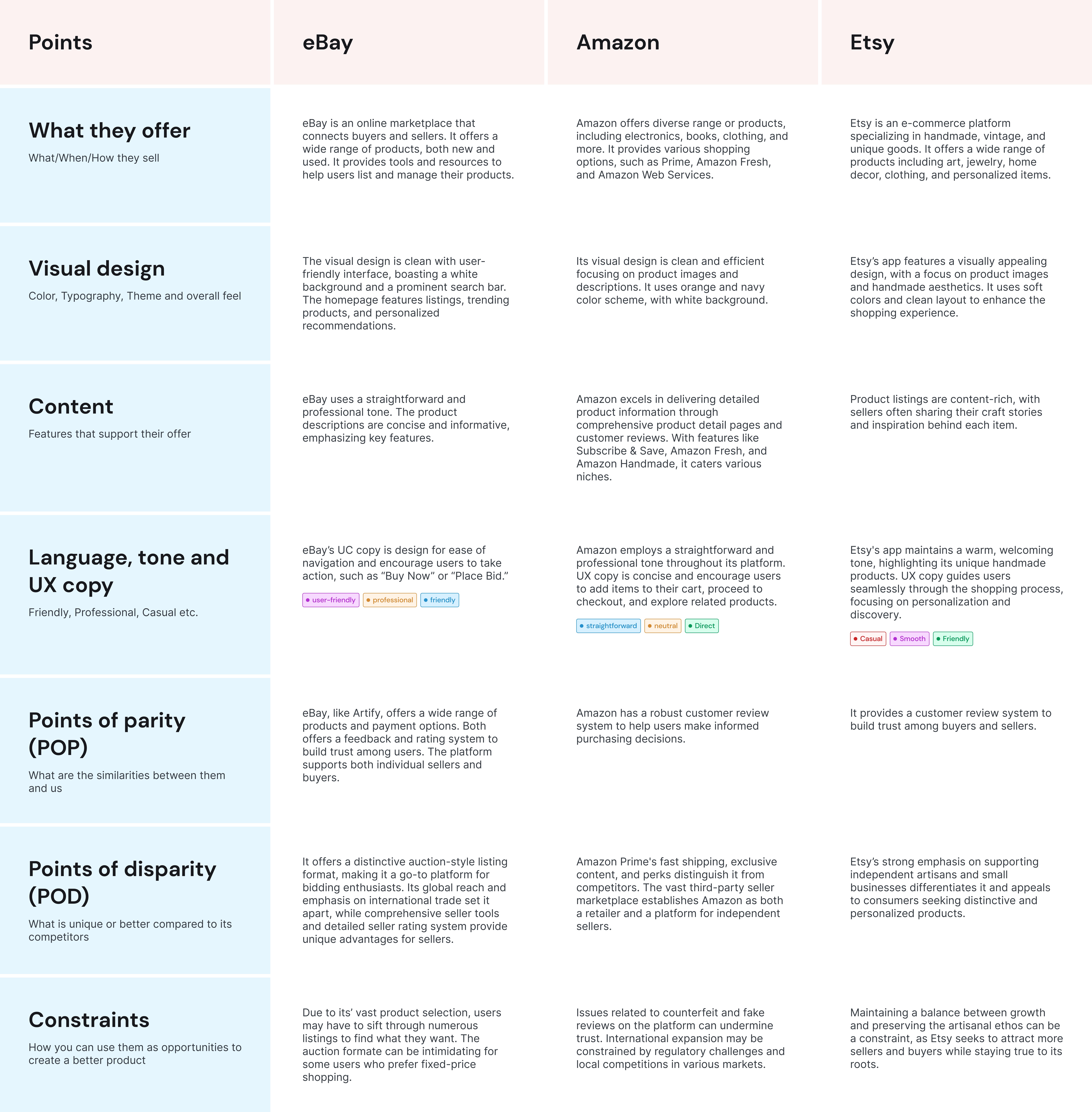 Competitive audit: Ebay, Amazon, Etsy